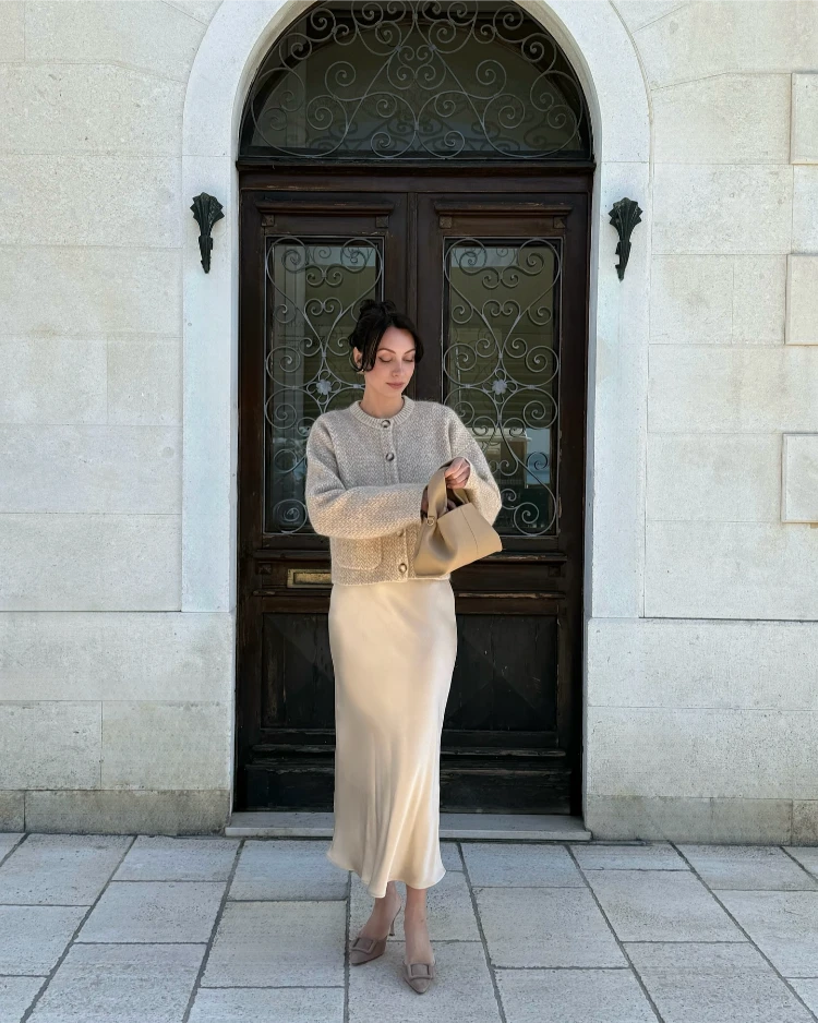 Diese Kombination ist ideal für Mütter, die einen klassischen, aber variablen Look möchten. Ein Rock in Midi-Länge, kombiniert mit einer eleganten Bluse und einem schicken Blazer, wirkt gepflegt und stilvoll – ohne zu formell zu sein.