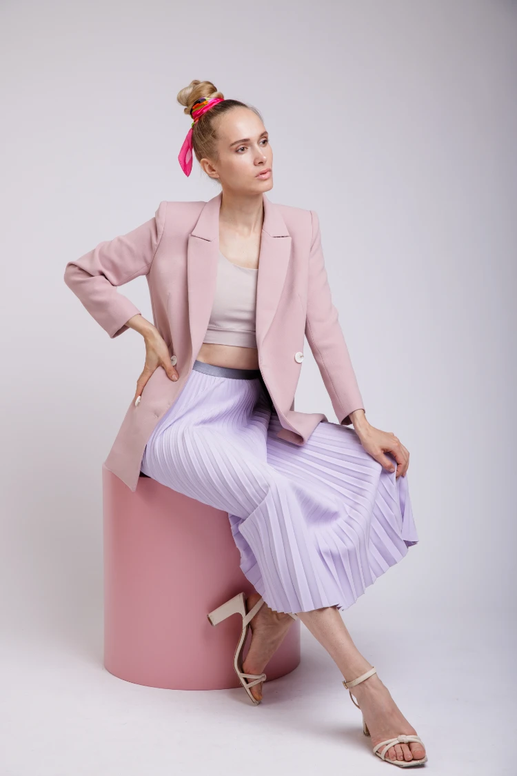 - Der Blazer in Flieder, Beige oder Pastell setzt stilvolle Akzente.