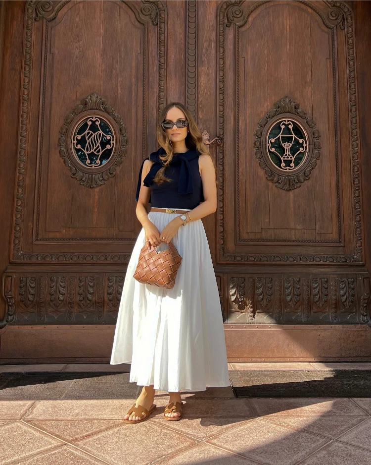 9. Weißer Rock + Blaues Hemd: Maritim & zeitlos für den Sommerurlaub