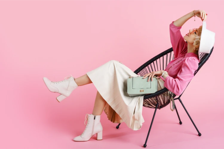 - Accessoires bringen Leben ins Outfit: Weiß ist wie eine leere Leinwand – setzen Sie bewusste Akzente mit bunten Taschen, Gürteln oder Statement-Schmuck. Auch Schuhe in kräftigen Farben oder Metallic können den Look aufwerten.