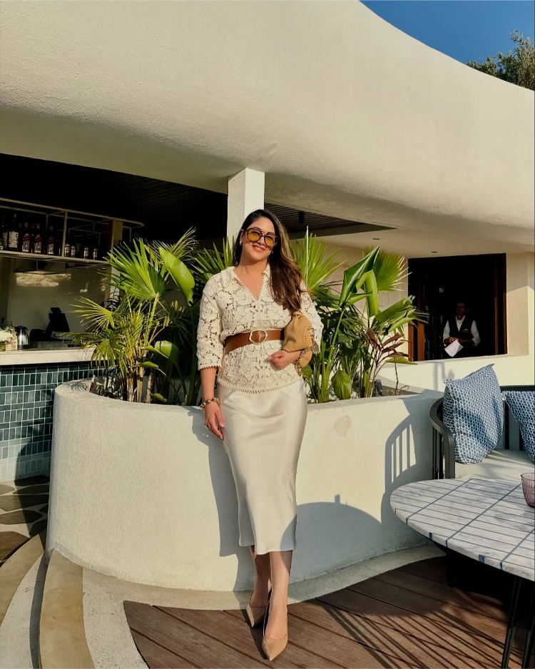 Ein weißer Rock und ein passendes Oberteil in gleichen Farbtönen verleihen dem Outfit eine harmonische und gleichzeitig edle Ausstrahlung. Dieser Look ist perfekt für besondere Anlässe wie Hochzeiten oder elegante Abendveranstaltungen.