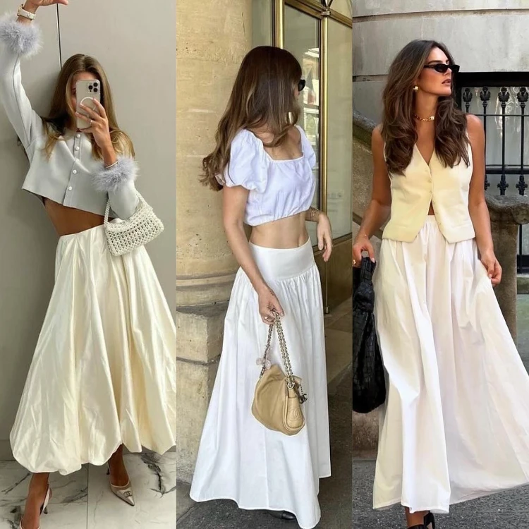 5. Langer weißer Rock + Crop-Top: Modern & lässig für den Sommer