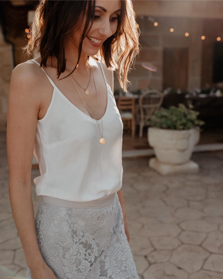 3. Weißer Spitzenrock + Seidentop: Romantisch & edel