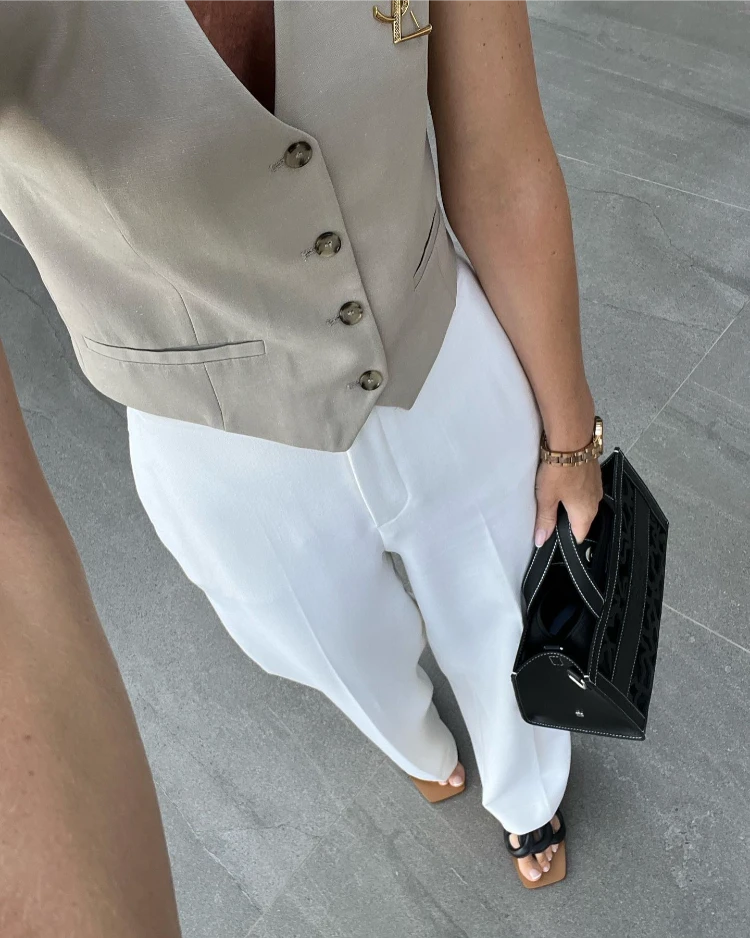 - Leinen- oder Anzugweste in Beige, Schwarz oder Khaki