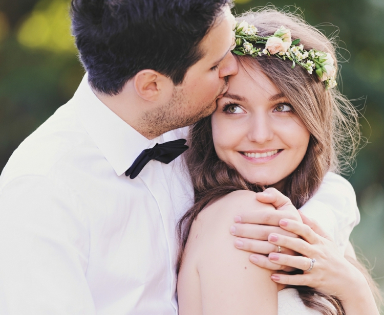 Brautnägel design braut lächeln kopfkranz bräutigam natur hände nagellack rosa fingernägel kurz