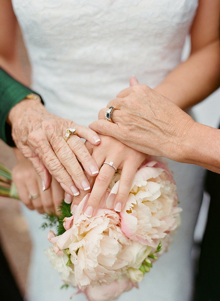 Brautnägel design dezent french blumenstraus pfingsrosen braut brautkleid gäste frauenhände ringe