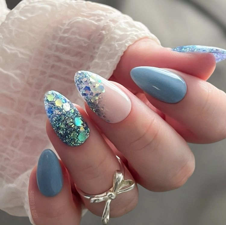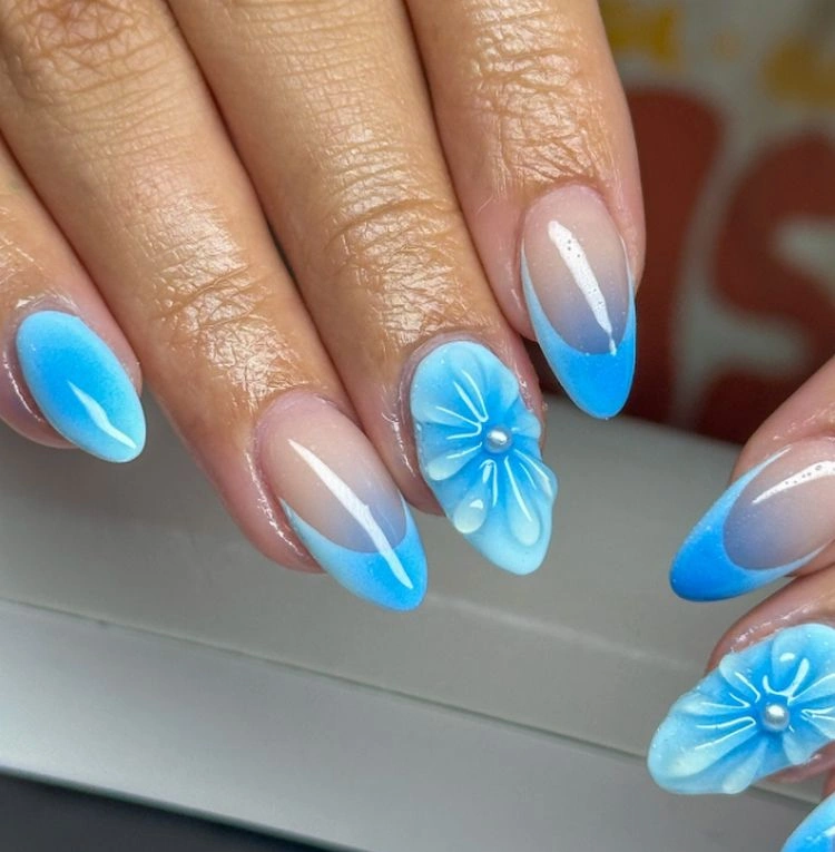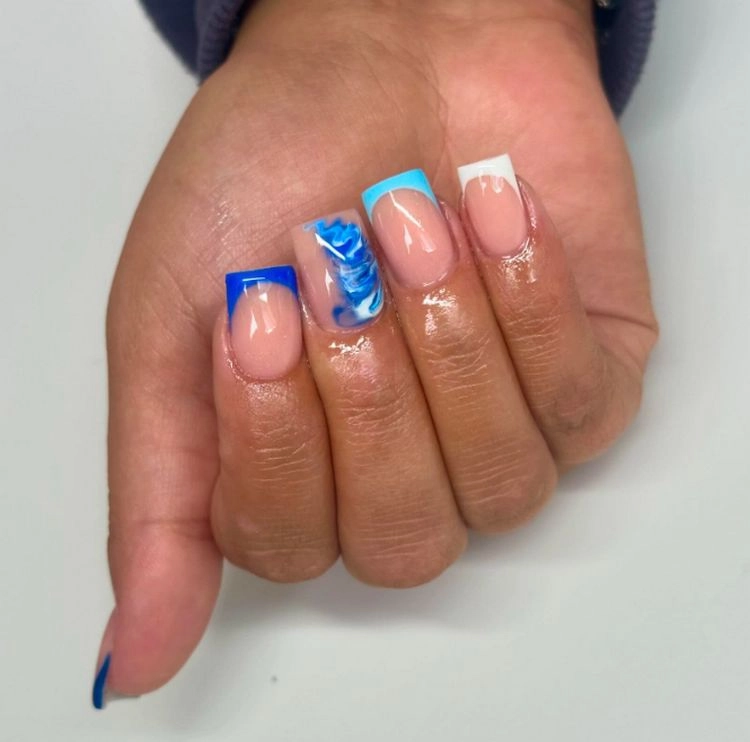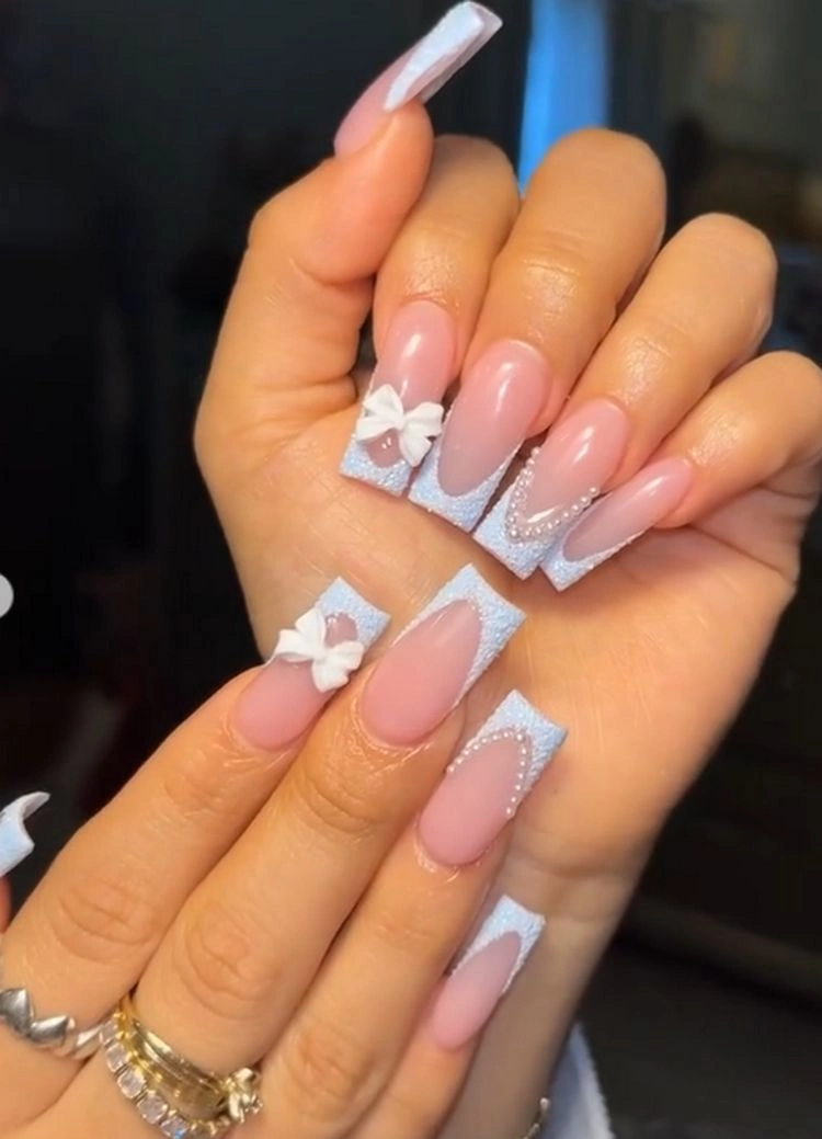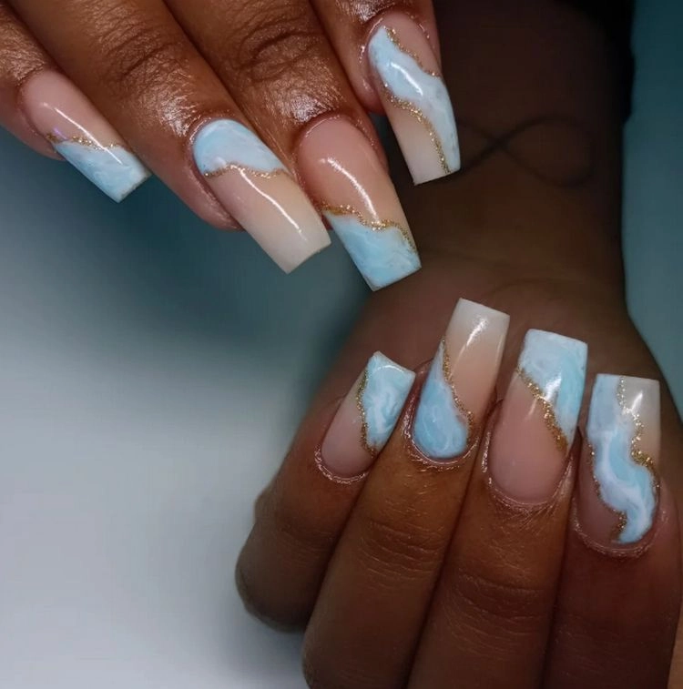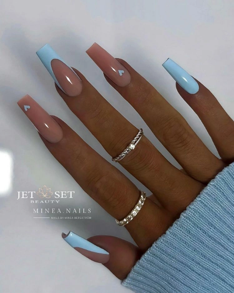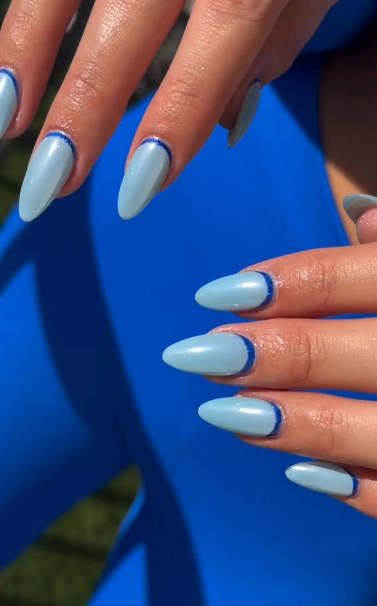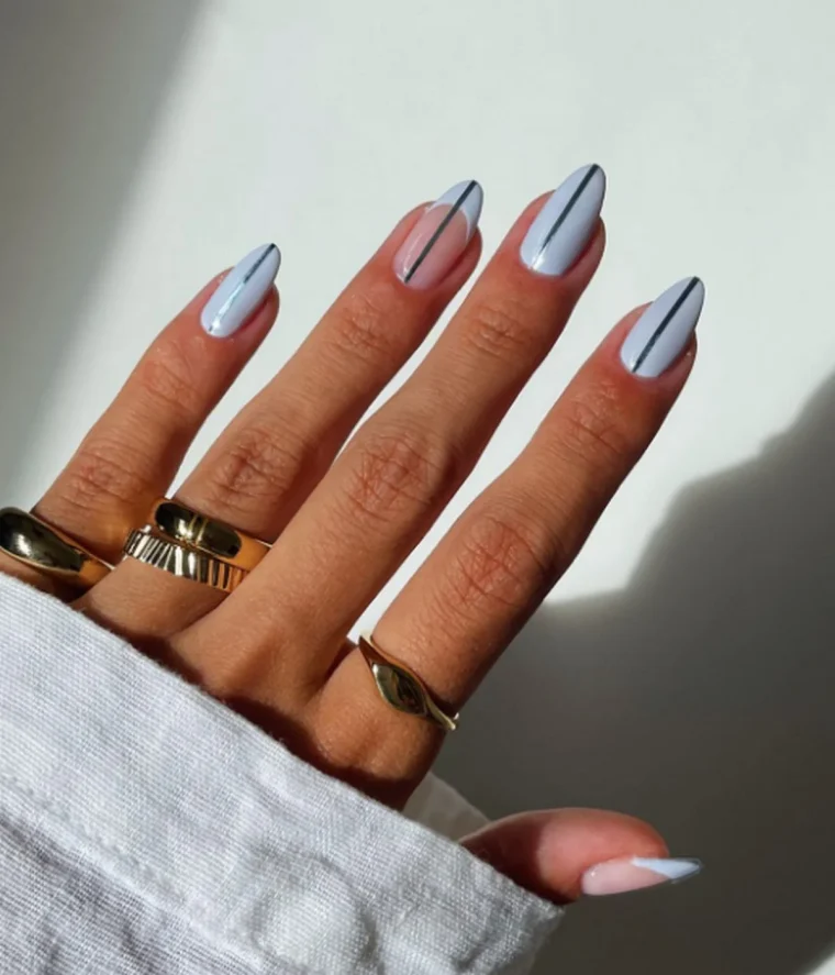 Die Farbe ist außerdem sehr vielseitig, sodass Sie sie auf Ihren Nägeln auf verschiedene Weise verwenden können. Es gibt zahlreiche babyblaue Nagelstile, von verspielten Kunstwerken bis hin zu klassischen French Tips, und sie alle strahlen einen mühelosen Chic aus.