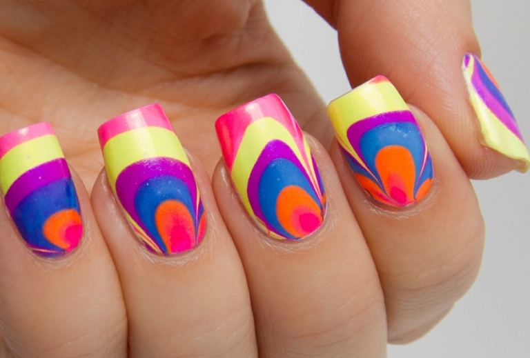 In Bezug auf Nagellack Farben sind Ihnen keine Grenzen gesetzt. Starke Nuancen und vibrante Neonfarben werden mit zarten Pastelltönen miteinander kombiniert, um ein wundervolles Gesamtbild erstellt zu werden. Mit Wassermelonenrot, Trendfarbe Mintgrün, Lavendellila, Zitronengelb, Azur und Aqua Blau können Sie bestimmt nicht falsch gehen. Etwas auffälliger sind die Neonfarben. Jedoch müssen Sie gestehen, dass sie besonders gut zu Ihrer gebräunten Haut passen würden.