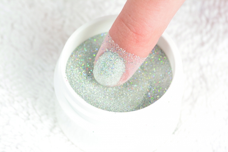 Der Trend kommt aus den USA. Dabei werden die Nägel zunächst mit einem Basecoat lackiert, dann in ein feines Pulver getaucht und anschließend mit einem Topcoat fixiert. Das Geheimnis liegt darin, dass das Pulver nur an der lackierten Fläche haften bleibt. Die überschüssige Menge lässt sich ganz einfach abklopfen und mit einem Pinsel entfernen.