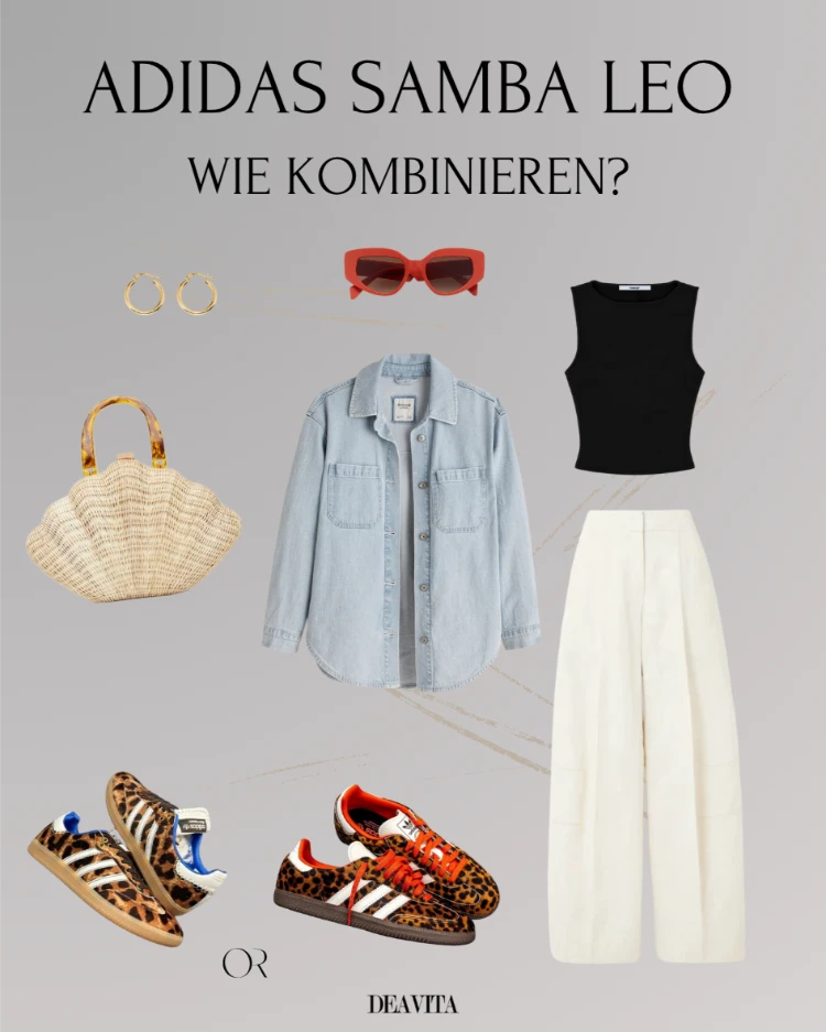 Sie haben sich spontan die Adidas Samba Leopard gekauft und stehen jetzt ratlos vor dem Kleiderschrank, unsicher, wie Sie sie kombinieren sollen? Keine Sorge! In diesem Artikel zeigen wir Ihnen, wie Sie den wildesten Sneaker 2025 stilvoll und vielseitig tragen – mit Outfit-Ideen für Alltag und besondere Anlässe.