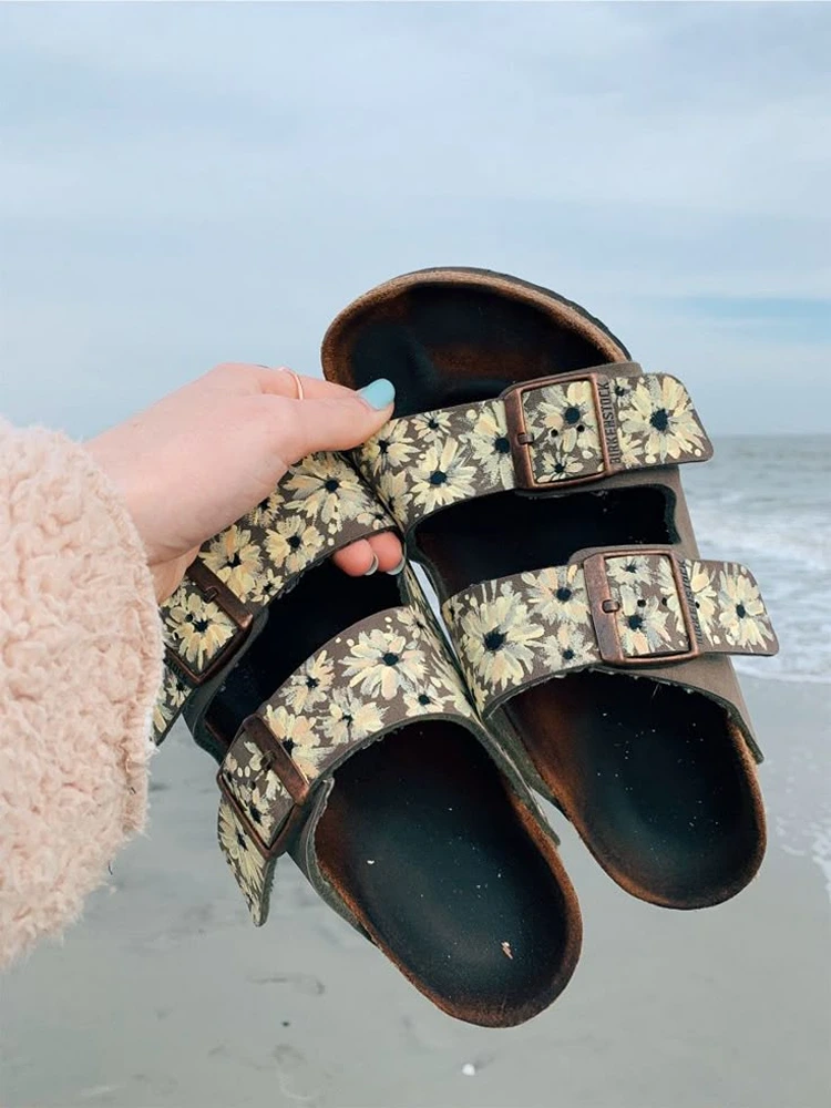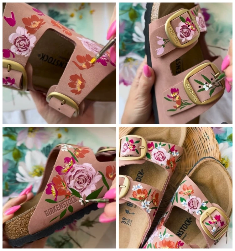 Bevor Sie mit dem Bemalen Ihrer Birkenstocks beginnen, sollten Sie sich Zeit für eine sorgfältige Vorbereitung nehmen – sie ist entscheidend für ein sauberes, haltbares Ergebnis. Zuerst sollten Sie die Sandalen gründlich reinigen. Entfernen Sie Staub, Schmutz und Rückstände von Pflegeprodukten mit einem feuchten Tuch oder etwas milder Seifenlauge. Lassen Sie die Schuhe anschließend vollständig trocknen – idealerweise an der Luft und nicht in der direkten Sonne.