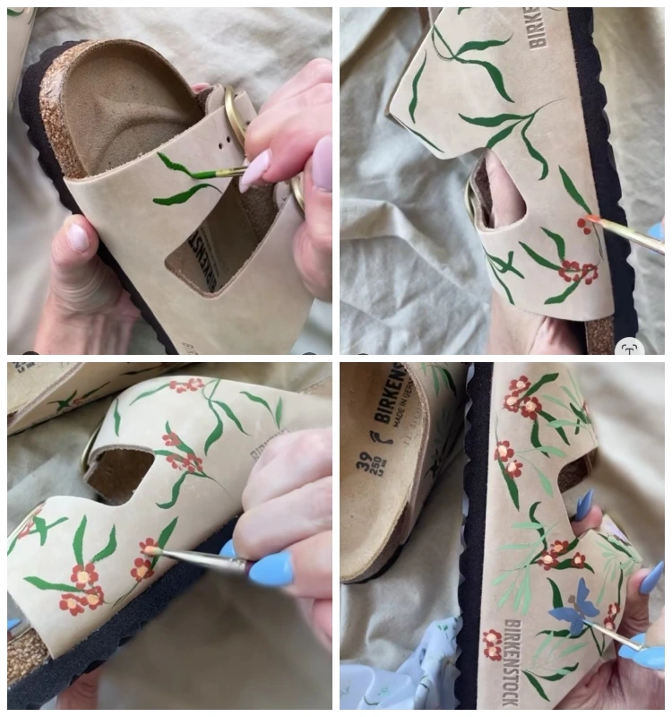 Für das Bemalen von Birkenstocks eignen sich besonders Farben, die gut auf Leder, Kunstleder oder synthetischen Materialien haften. Wichtig ist, dass die Farbe flexibel bleibt und nicht bricht, wenn das Material sich beim Tragen bewegt.
