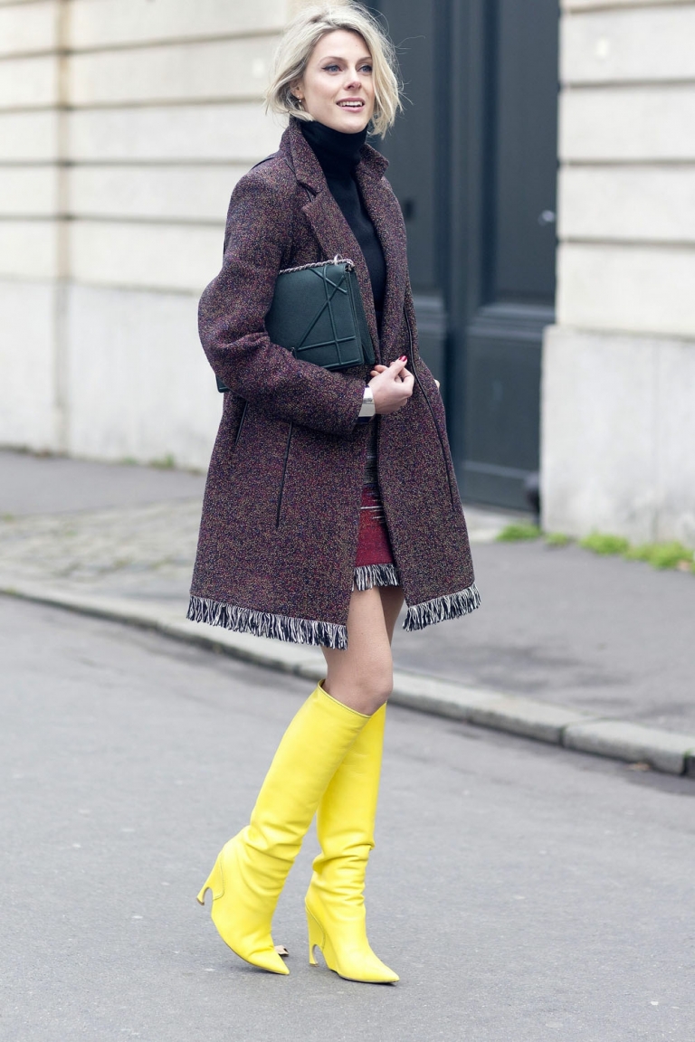 Vergessen Sie auch die Stiefel und Stiefeletten nicht. Klar, sie sind nicht unbedingt die günstigste Wahl für den Sommer, aber vielleicht gibt es ja im Frühling und später im Herbst den ein oder anderen trüben Tag, an dem Sie ein Modell in schönem Gelb (und vielleicht sogar mit Schlangenmuster oder einem anderen Tierprint) tragen können. Vor allem zu Jeans sehen diese eleganten und weiblichen Schuharten sehr attraktiv aus.