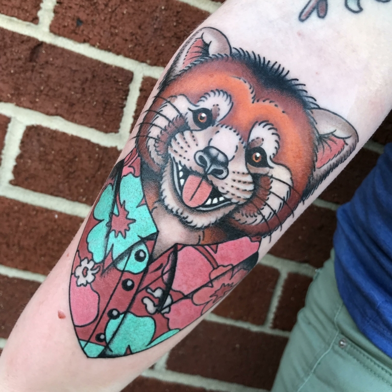 Wenn man an den Pandabären denkt, kommt einem meist nur der oben beschriebene Vertreter in den Sinn. Der nicht weniger schöne und interessante rote Pandabär wird häufig vergessen oder man kennt ihn sogar gar nicht. Und selbst wenn man dieses attraktive Tier schon einmal gesehen hat, war einem wahrscheinlich gar nicht bewusst, dass es sich um eine Art handelt. Der rote Panda ist auch unter anderen Bezeichnungen bekannt, wie kleines Tier, Katzenbär, Bärenkatze, Feuerfuchs und Goldhund. Möchten Sie ein farbiges Panda Tattoo, das dennoch realitätsgetreu ist, dann können Sie sich auch für den roten Bären entscheiden. Eine konkrete Bedeutung ist für das Tattoo mit roter Version nicht bekannt.