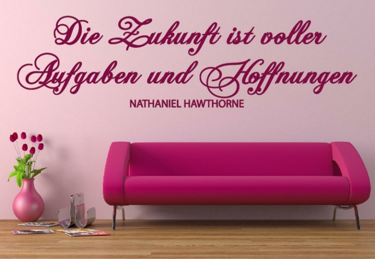 Ein riesiger Vorteil bieten die Wandtattoos zudem, Sie sehen aus wie aufgemalt, ohne jedoch nur einen Tropfen Farbe zu benutzen. Durch einfaches Aufkleben entstehen nicht einmal unerwünschte Farbklekse. Die kleinen Wegweiser gibt es in den unterschiedlichsten Formen, von geradlinigen Aussagen über elegante Schriften bis hin zu kombinierten Texten mit Motiven. Gerade bei einem Wandspruch mit Schmetterlingen kann das Design selbst verändert werden, indem die kleinen Falter einfach vor der Montage ausgeschnitten werden. So können Sie nach Lust und Laune das Sprichwort ganz nach Ihren Vorstellungen verändern. Durch diese Veränderung kann der Spruch an Ihre Platzverhältnisse angepasst werden und enthält gleichzeitig eine persönliche Note.
