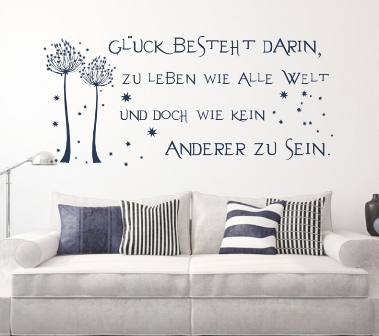 Mit den bunten Wandsprüchen lässt sich jede Räumlichkeit im Handumdrehen verschönern. Die Wandtexte bringen zudem eine ordentliche Portion Abwechslung in das Zimmer und sind aus verschiedenen Themengebieten erhältlich. Ganz gleich für welche Lebenslage, Wandtattoo Sprüche sind kunstvolle Lebensunterstützer in vielen Situationen. Sie sind motivierend, lustig oder nachdenklich. Lassen Sie sich von diesen Beispielbildern inspirieren und finden Sie einen Spruch, der Ihr Eigenheim mit einer tiefgründigen Aussage verzaubert.