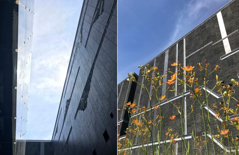 Schwarzer Stein als minimalistische Wandverkleidung für ein modernes Museum in Taiwan