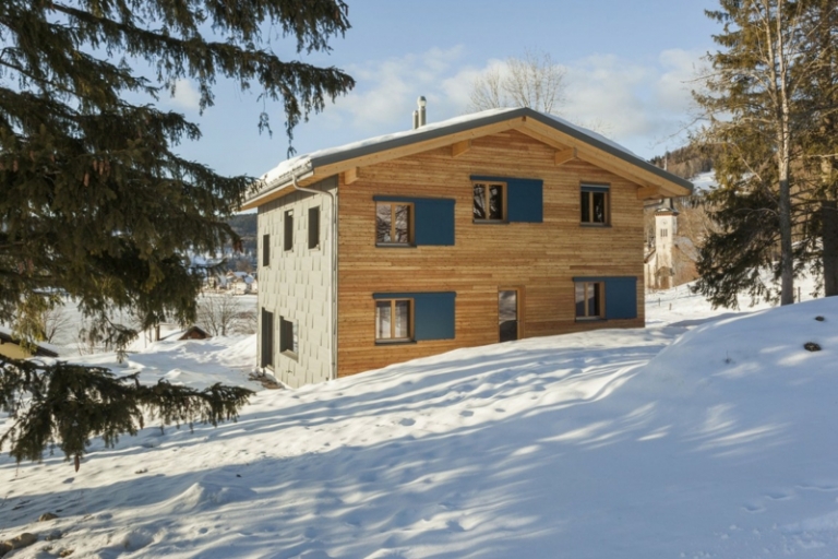 Und das Design der Hütte passt auch perfekt in die Gegend, denn es erinnert an eine Skihütte und strahlt dieselbe warme Atmosphäre aus, wie man es erwartet. Es stammt von den Architekten von Kunik de Morsier architectes.