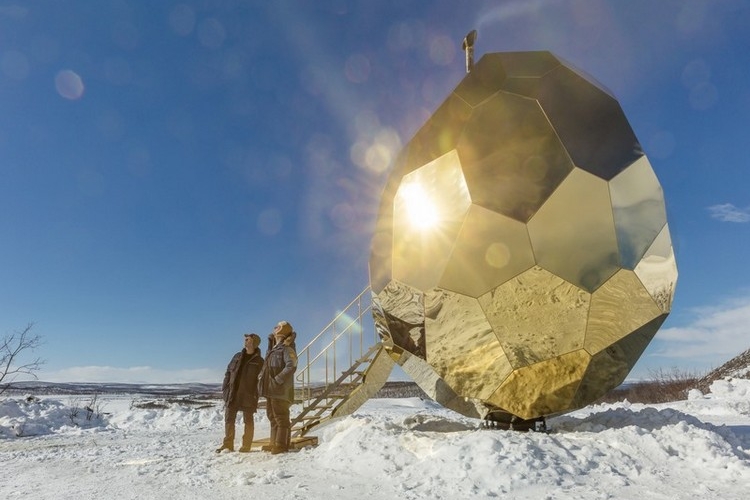 Es handelt sich um eine öffentliche Außensauna mit der untypischen Form eines riesigen, goldenen Eies. Das Projekt wurde Solar Egg genannt und erfüllt das Bedürfnis nach einem warmen und einladenden Ort für die Bewohner der schwedischen Stadt Kiruna. Die eiförmige Sauna beeindruckt mit ihrem einzigartigen Design und sieht wie ein echtes Schmuckstück in der Mitte der arktischen Landschaft aus. Lesen Sie weiter, um mehr über das besondere Projekt der Künstler zu erfahren.