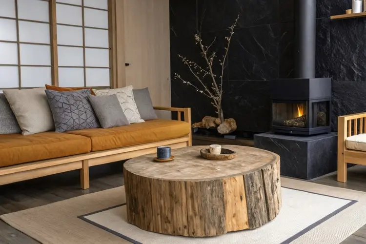 Baumstamm oder -scheibe für ein Stück Natur im Wohnzimmer