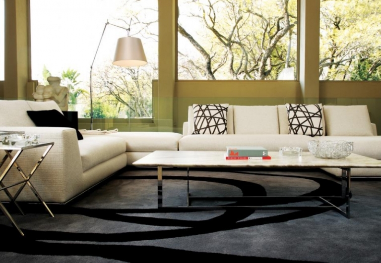 Die Raumgegebenheiten spielen bei der Auswahl der Möbel eine entscheidende Rolle – Wohnlandschaft, Kaffeetisch und Co. sollten einen Mindestabstand von ca. 1,5 Metern von der Küche und Essplatz haben – ansonsten wirkt das Interieur überfüllt und unordentlich. Dabei nehmen normalerweise halbrunde Designs doppelt so viel freie Fläche als Ecksofa zum Beispiel. Ist die Wohnfläche jedenfalls begrenzt, dann bleibt nur eins – anstatt eine Sitzecke in der Zimmermitte, wird ein gemütlicher Bereich in der Ecke gestaltet – auf dieser Weise ist die freie Bewegung im Raum möglich.
